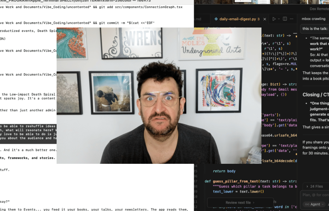 And then, suddenly… maybe building an app wasn’t so hard? After my 20th panic attack spurred by a LinkedIn post about how I was careening towards the permanent underclass, I decided this would be a great opportunity to dip my toe into the sparkly waters of “vibe coding” (ie, coding for non-coders [ie, developer cosplay]). So I fired up Claude Code and started prompting.